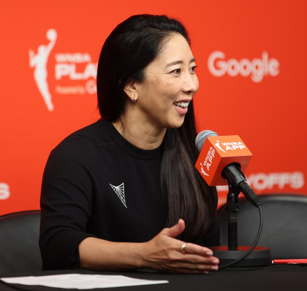 Golden State Valkyries Head Coach Natalie Nakase, 14 Sep 2025, at Target Center in Minneapolis, Minnesota. Photo by John Mac.