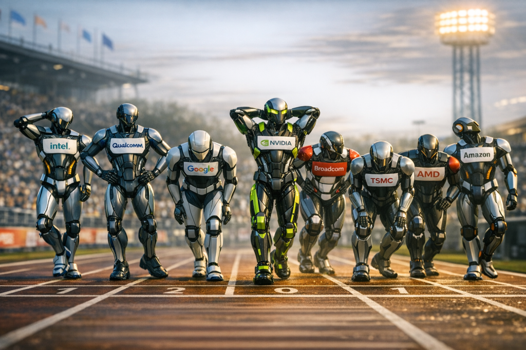 NVIDIA Corporation is headquartered in Santa Clara, California, and was founded in 1993 by Jensen Huang, Chris Malachowsky, and Curtis Priem. It is a fabless semiconductor company — meaning it designs its chips but outsources manufacturing, primarily to TSMC in Taiwan. Today, with a market capitalization that has surpassed four trillion dollars, NVIDIA stands as one of the most valuable companies in the history of global business.