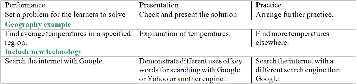 Finally, this is where the bridge to technology comes in. If a teacher starts from the perceived needs in the teaching and learning of the subject, and then systematically uses the 3Ps to ask: