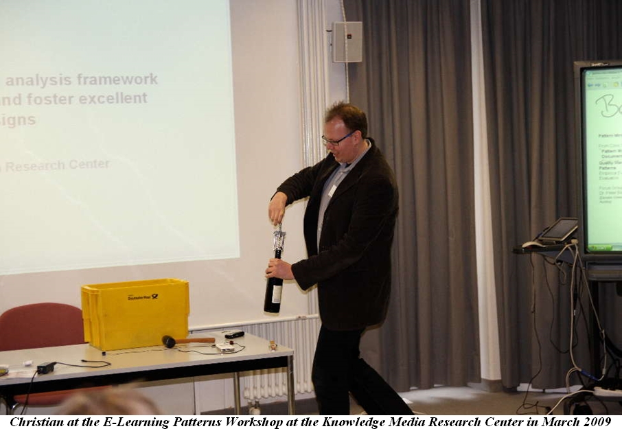 He has recently won the best paper award at the E-Learning 2009, the largest conference on e-learning in the German speaking areas. Another indicator of his distinctive contribution to the field of patterns in instructional design is the so called “Shepherding Award” that he received at this years’ EuroPLoP conference in Irsee, for his effort as a conference reviewer.