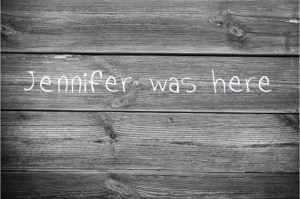 I will call her Jennifer. I was thinking about her a couple of days ago when I fixed up a neglected corner of my garage, a corner where my children and their friends had penciled in their names and some attempts at adolescent humor. “Jennifer was here” was written next to a heart.