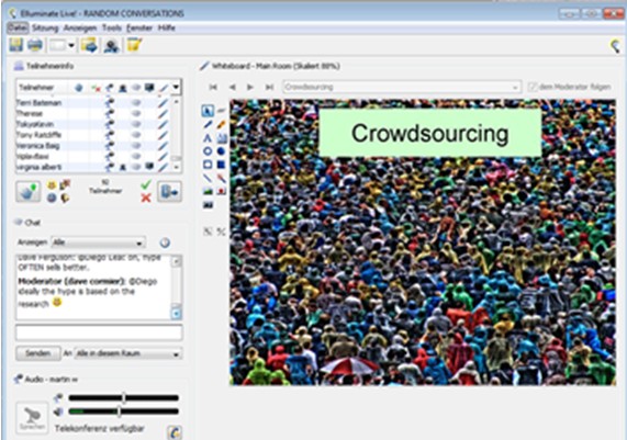 Today’s Elluminate Web conference attracted approximately 95 participants and featured keynote speaker Martin Weller, Professor of Educational Technology at the Open University. Martin frequently writes about educational media, open access and e-learning pedagogy in his personal blog “The Ed Techie.” He talked about how new tools like blogging and other social software applications change research and publication practices, as well as induce new forms of knowledge creation, for example crowdsourcing.