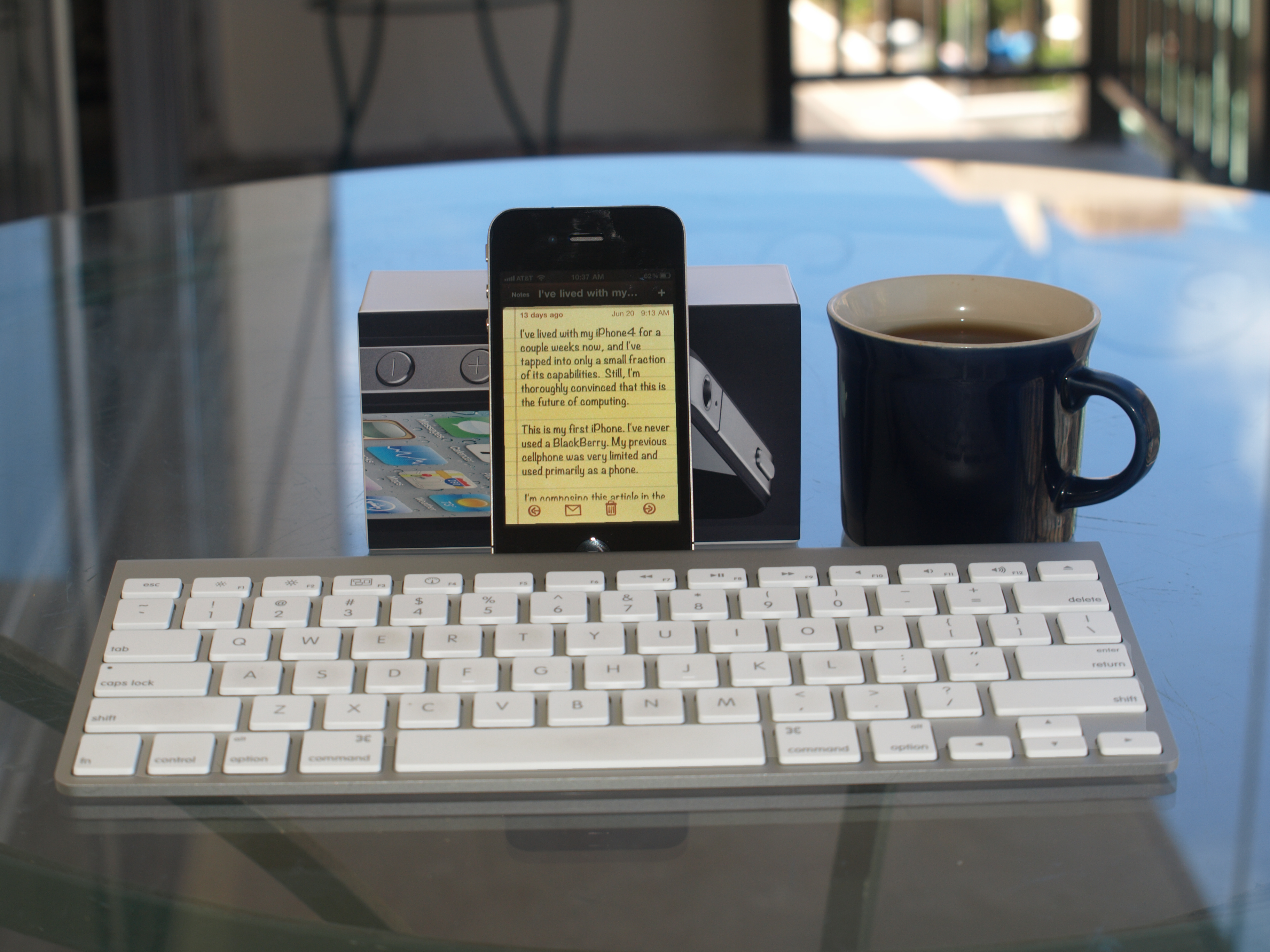 I already had an iPad and the Apple Bluetooth wireless keyboard so I decided to experiment with more serious writing on the iPhone. (See the photo in the article.) I was completely surprised when I found how comfortable and intuitive the iPhone + keyboard combo was — from the get go. There was no learning curve or need to “warm up” to the process.