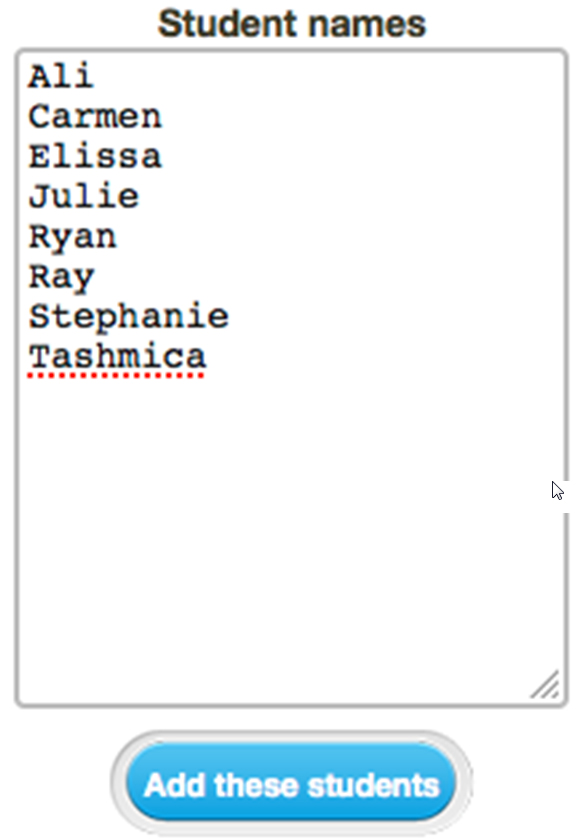 Student name entry is also flexible, with an open data-entry system allowing for first names, student numbers, full names, etc. There does not appear to be an import function so large class setup has the potential to be time consuming. However, when I copied and pasted a list of student names from an existing document, I had no trouble.