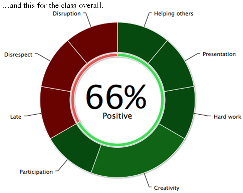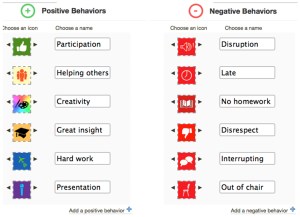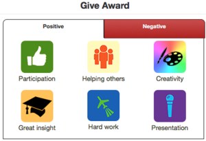 To give awards, instructors simply click on a student’s name and assign positive or negative behaviors.