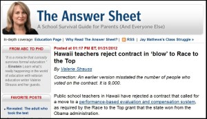 (Valerie Strauss, “Hawaii Teachers Reject Contract in ‘Blow’ to Race to the Top,” Washington Post, 1.21.12.)