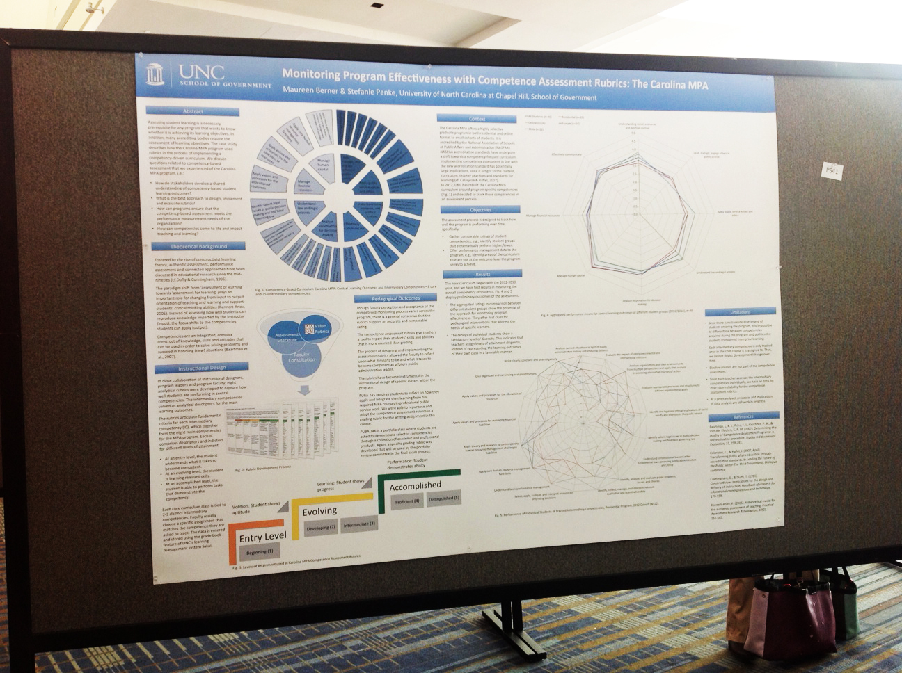 The poster session was one of my favorite parts of the conference, though after two hours of Q&A I was more than ready to call it a day. I presented the assessment of competencies at the Carolina MPA program and enjoyed reviewing several related posters on assessment and emerging technologies.