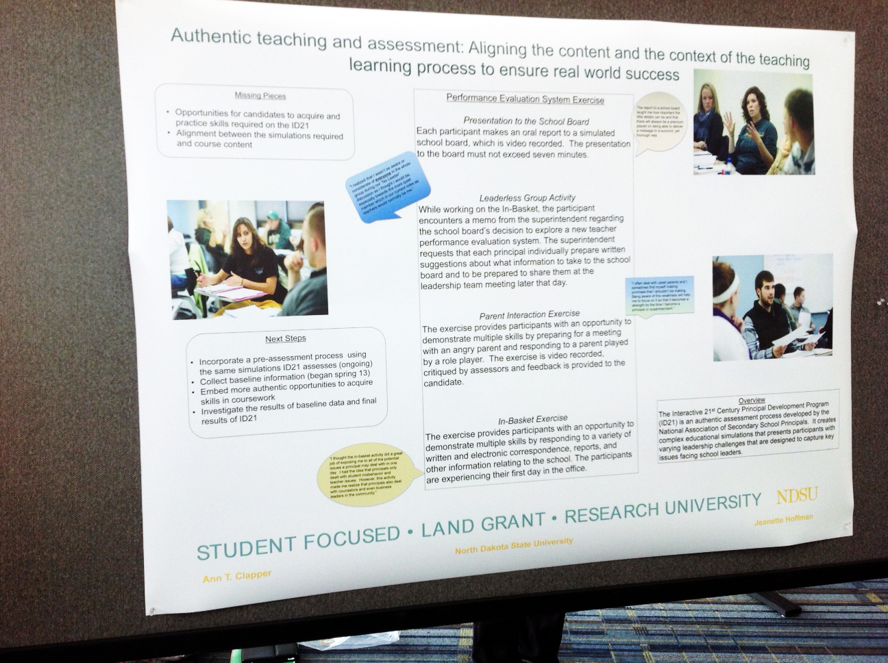 Friday morning, I enjoyed several interesting talks on assessment. Michelle Yeo’s (Mount Royal University) presentation contrasted instructors’ personal concepts and individual thinking about assessment with findings and models reported in the assessment literature and established practices of assessment in higher education. Davida Scharf (New Jersey Institute of Technology) presented the Scharf Model of Core Competency Assessment, an instructional approach to teaching and an instrument to evaluate information literacy gains among students.