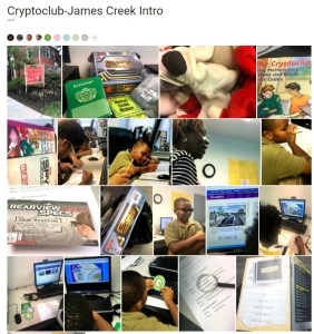 The students use the computer lab at the James Creek Community Center to learn the basics of computers and how to use them, and tackle studies in Microsoft Word, Powerpoint, and accessing the Internet to search for visual resources. This group of students also started to study cryptology, using the resources of the Chicago-based ‘CryptoClub’ project.