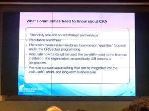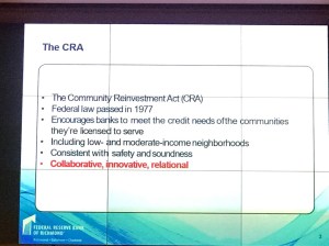 Dr. McLaughlin also asked: how can we move from compliance with the CRA to impact? and how can we foster a research agenda to measure impact?