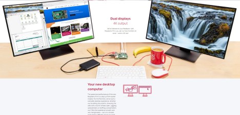 Here’s a two-monitor setup with the Pi 4. For information on how to set it up, click here.