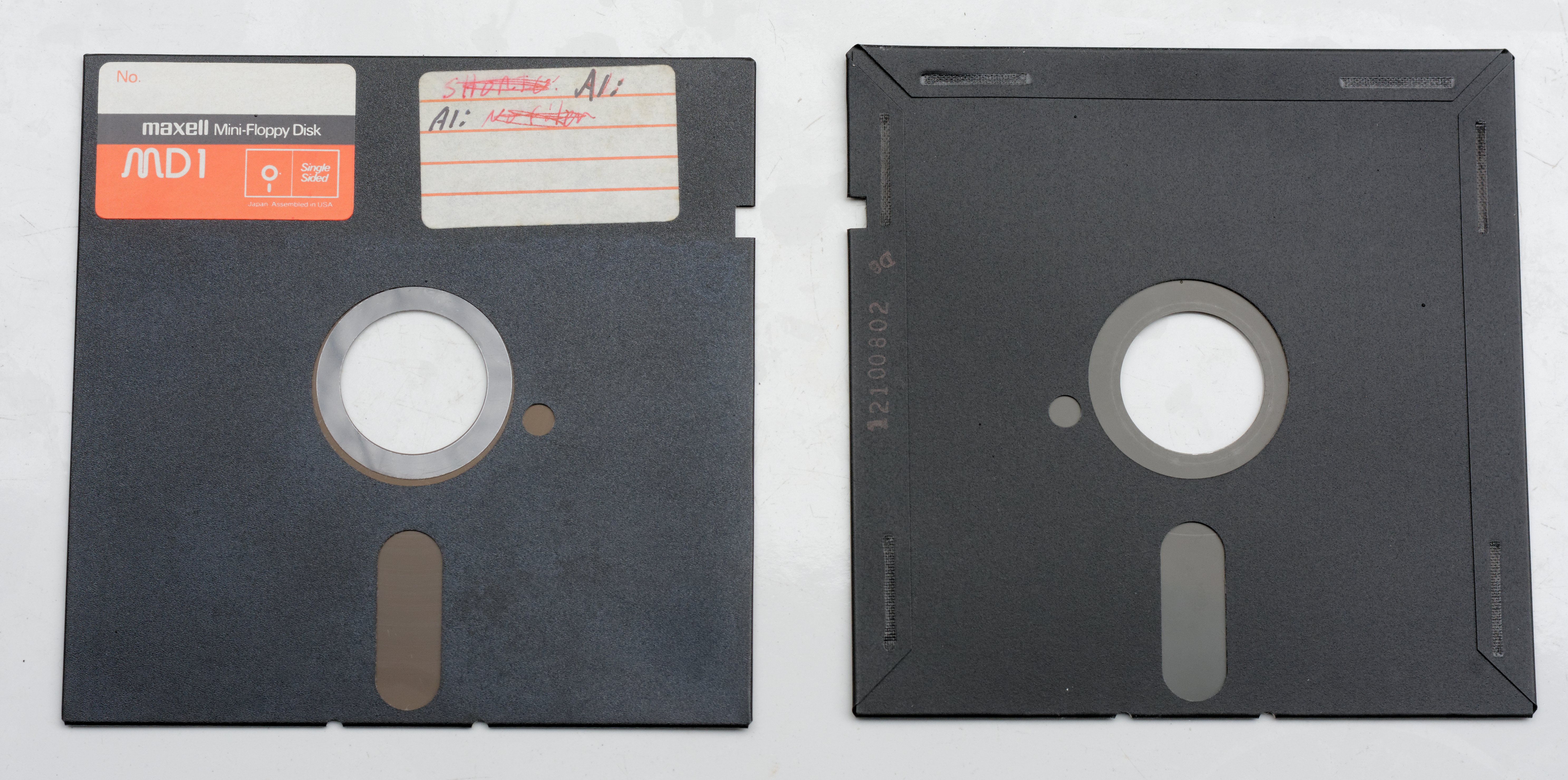 I upgraded one of the PPC’s 5.25″ drives to a 3.5″ drive with a capacity of 720 KB. Later, I upgraded the 720 to a 1.44 MB drive. Despite the increase in capacity, the 1.44 MB disk would still not be able to store a single iPhone photo.
