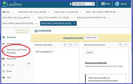 Those familiar with Laulima’s discussion tool can disregard steps 1 and 2 and go straight to step 3.