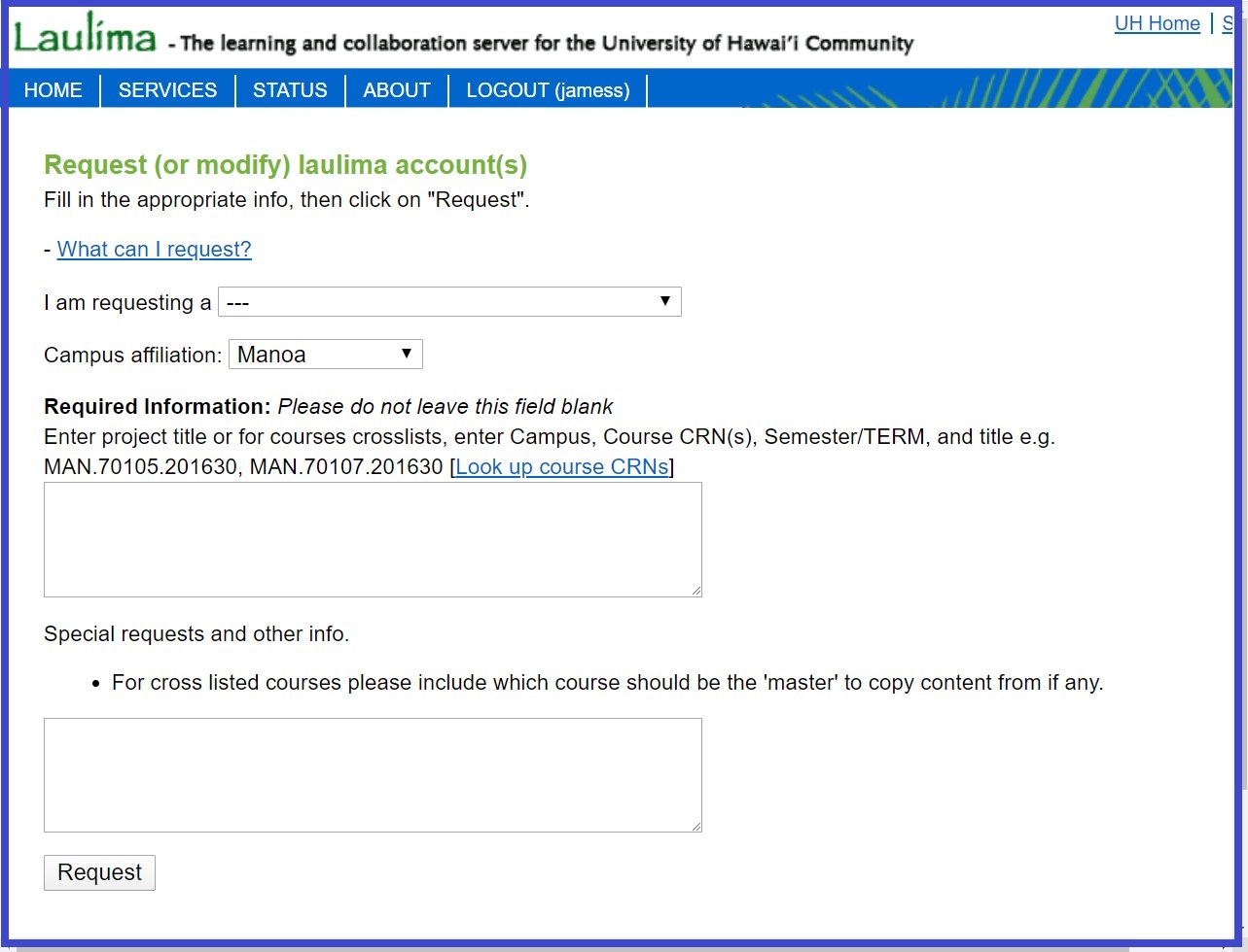 e. Complete the “Request (or modify) laulima account(s)” form.