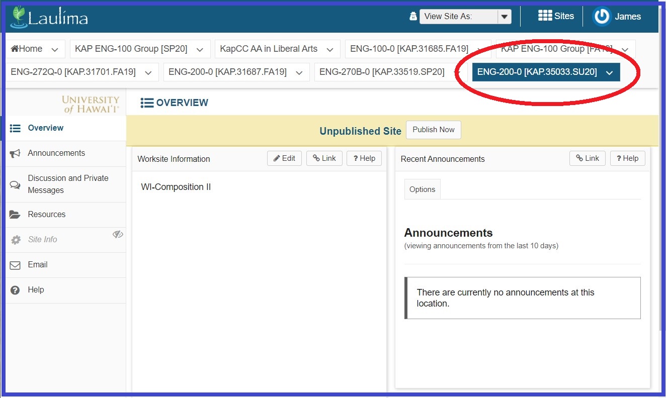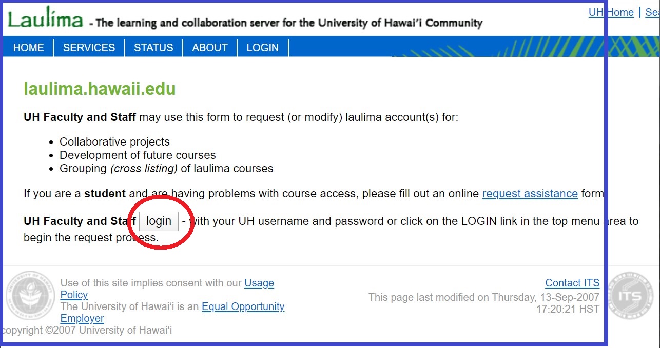 a. Go to: https://laulima.hawaii.edu. You may be asked to log in with your UH email username and password.