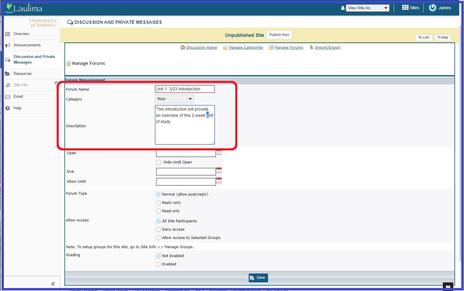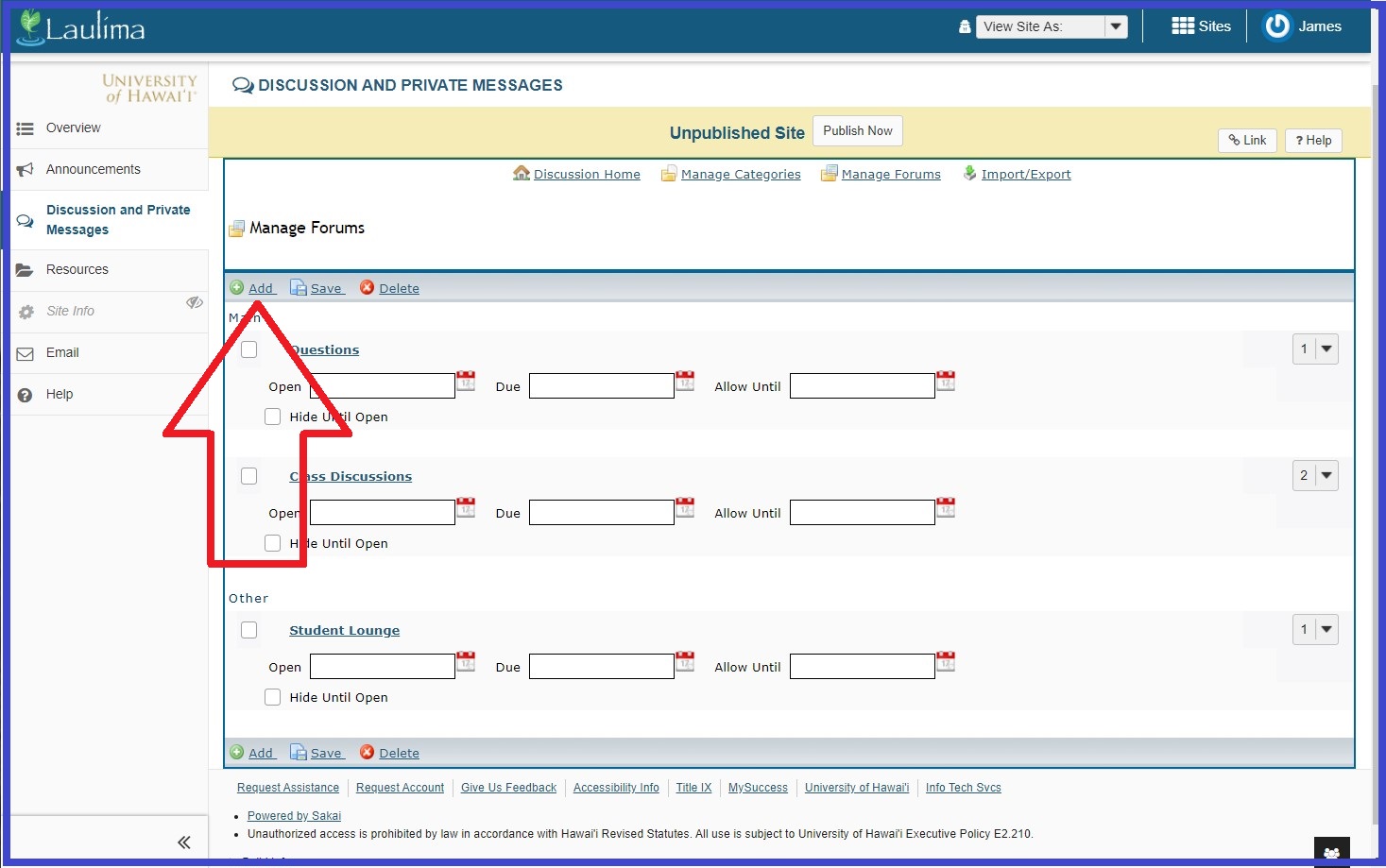 Those familiar with Laulima’s discussion tool can disregard steps 1 and 2 and go straight to step 3.