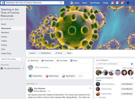I hope that you all know about the Facebook site — Teaching in the Time of Corona: Resources. It started with a handful and now has 6800+ members. I’ve posted a couple of times in response to suggestions, but it is a good place to ask a question and get immediate responses.