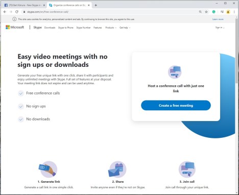 Bert Kimura (4/3/20 10:45AM HST) shared an article by Michael Potuck1 on his Facebook page. Potuck reports that, “starting today, [Skype] users don’t need to sign up for an account or download software to join cross-platform video conferences. There’s also a simpler interface that allows users to start a video call in just one click. Skype announced the changes on Twitter and on a new landing page today: