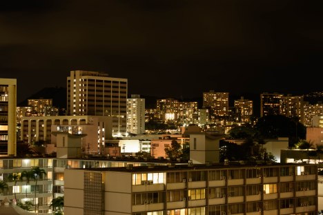 The order has changed the city’s nightscape, with apartment buildings lit up like never before. This view is toward the north, Punchbowl and the Koolaus beyond. The entire UH System has been shut down, and all classes have been moved online. Since all of my classes have been online for years, there was no transition for me and my students.