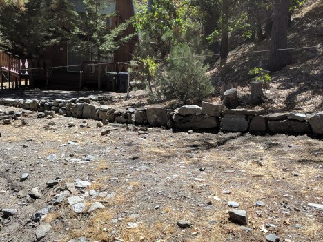 For reasons that I will explain, the real Odyssey began in the fall of 2015. To understand why, I must take you on a detour, the first of many. I have had detours of detours. I have included a picture of a stone wall that I build without the aid of machines but with some help from my wife. You can see that slope at the left showing how the land rises up quickly. We bought a parcel of mountain land, about 1/4 of an acre, for a cabin. We then began the permitting process with the county of San Bernardino. The town is too small to be incorporated and is administered by the county.