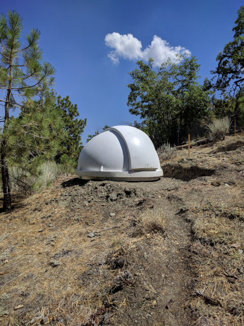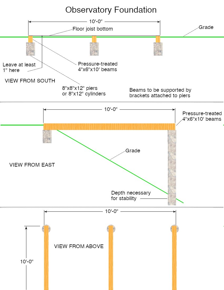 May 10, 8:36 AM. With a building permit approved and issued, we could move ahead with ancillary structures, which meant our 10’x10′ observatory. Here’s how we arranged everything. We paid Tuff Shed for a 10’x10′ standard shed without a roof attached. Because of the extra charge for the awkward location, it cost about the same as it would have with the roof.
