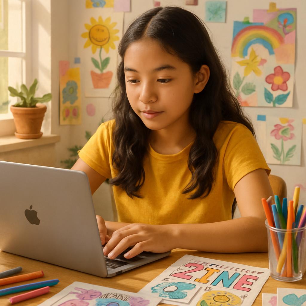 “What surprised me was how much plastic affects turtle babies. I saw a video that made me cry a little, but then Luna helped me turn that into a comic that teaches kids how to help. I think AI made this project more powerful, not just easier. I want to keep making zines like this for other animals and causes!”