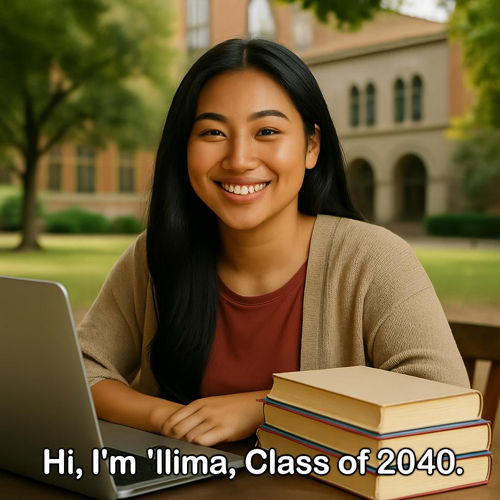 ʻIlima: Aloha kākou! My name is ʻIlima Kahele Wong, and I’m a 21-year-old senior at the University of Hawaiʻi at Mānoa, Class of 2040. I’m part-Hawaiian and part-Chinese, born and raised in Kāneʻohe, Oʻahu. When I think about what college used to be — lectures in lecture halls, crushing student debt, cookie-cutter degrees — I honestly can’t imagine learning that way.