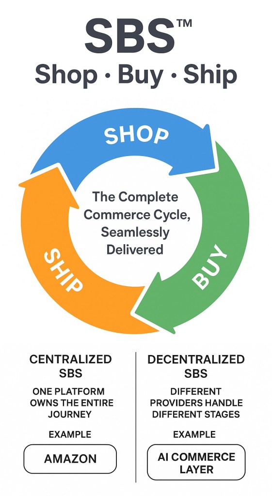 That’s why I’m introducing SBS™ — Shop · Buy · Ship. It’s a simple but powerful framework for understanding the entire commerce cycle, whether it’s controlled by one company or spread across many.