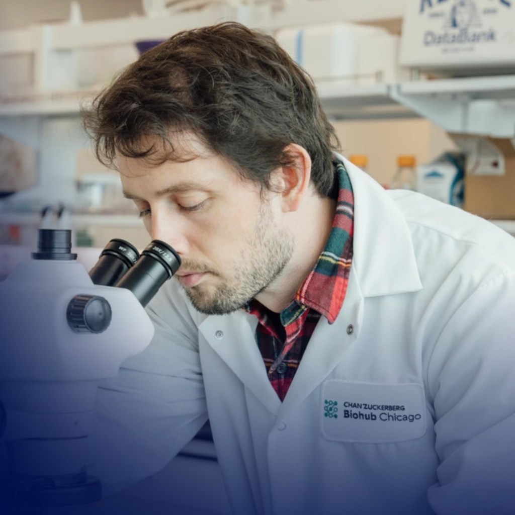 Csaba Forró in lab at Chicago Biohub by Dale Ramos CZI