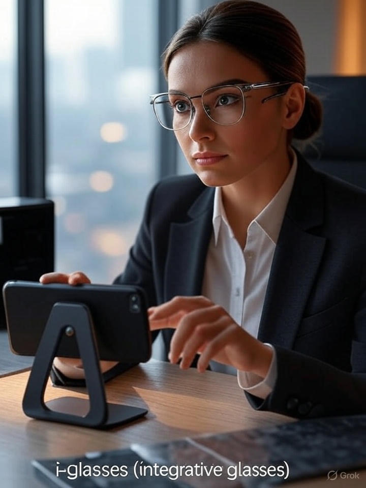 Introduction: Grok and I had this future-oriented conversation last night (8/21/25) and this morning. In the course of the discussion, I brought up the idea of “i-glasses (integrative glasses),” which we defined* as a wearable computing system centered on AI-powered smart glasses, augmented by a bridge unit (a compact, external compute device) and eventually integrated with radar transceivers, drones, and accessories such as haptic gloves and body sensors. In time, the functions of the bridge unit would be wholly incorporated into the glasses. -js