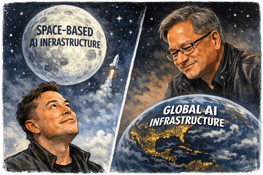 While Elon Musk pursued dramatic corporate consolidation and cosmic visions, Jensen Huang spent the opening weeks of 2026 doing what he does best: methodically advancing Nvidia’s technological leadership while articulating a pragmatic vision of AI’s industrial transformation. Through a series of high-profile appearances and product announcements, Huang positioned Nvidia not merely as a chip supplier but as the architect of AI’s physical infrastructure, from silicon to systems to software.