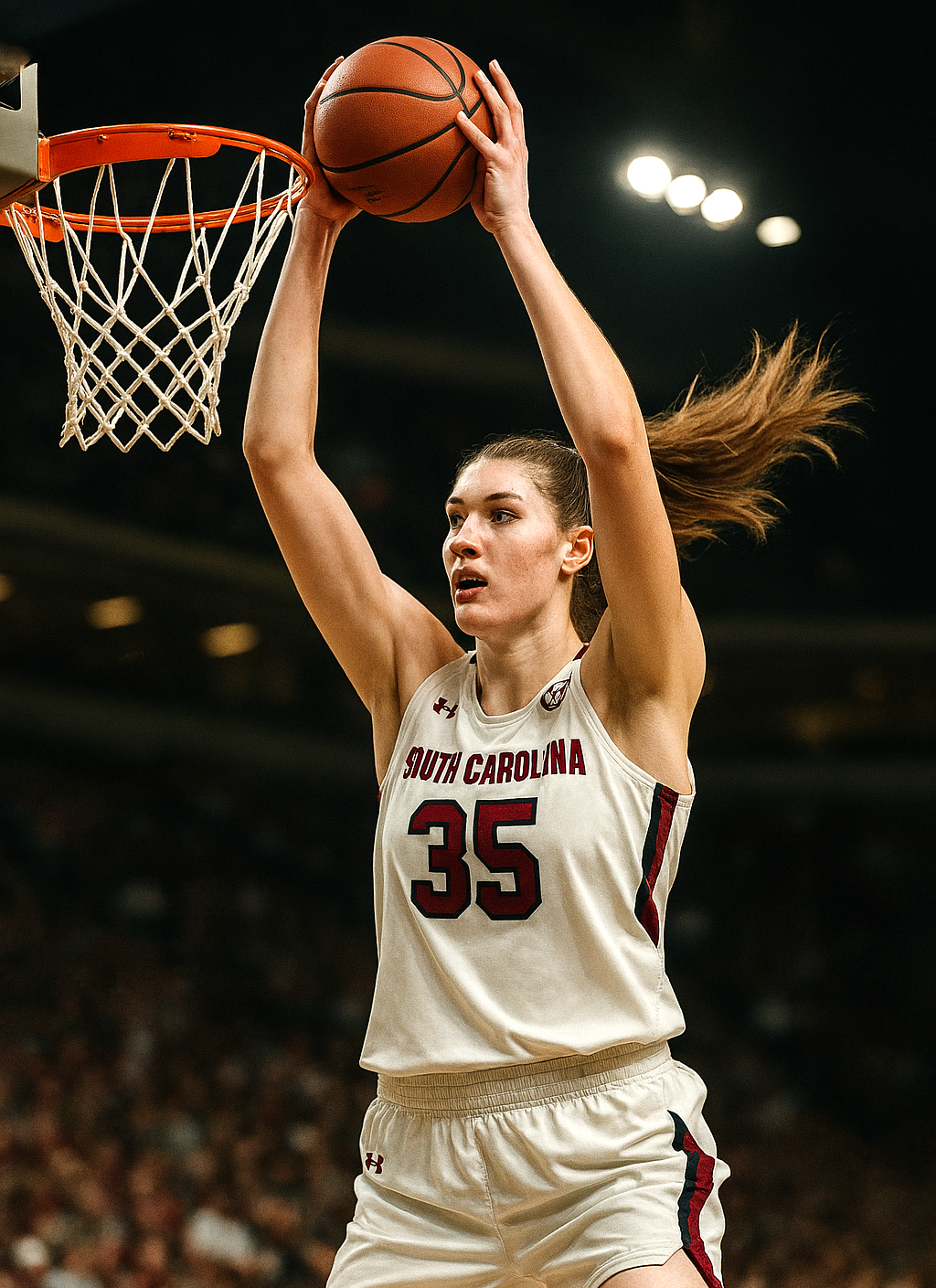 A video of Alicia Tournebize, an 18-year-old, 6’7″ freshman from Vichy, France, who joined Dawn Staley’s South Carolina Gamecocks in January 2026, is going viral on YouTube. She had already made history before setting foot on a college court. She became the first Frenchwoman to perform a dunk in an official game in September 2024, during an NF2 contest between Bourges and Beaumont, with that milestone only formally recognized after video of the dunk was published in March 2025. That first dunk was followed by a two-handed slam at the 2025 FIBA U18 EuroBasket tournament that went viral worldwide.